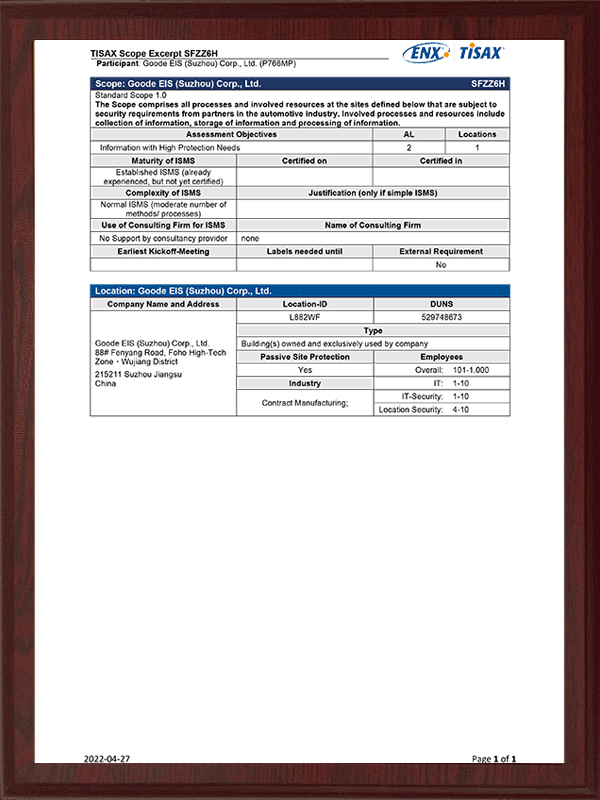 TISAX certifikat SFZZ6H